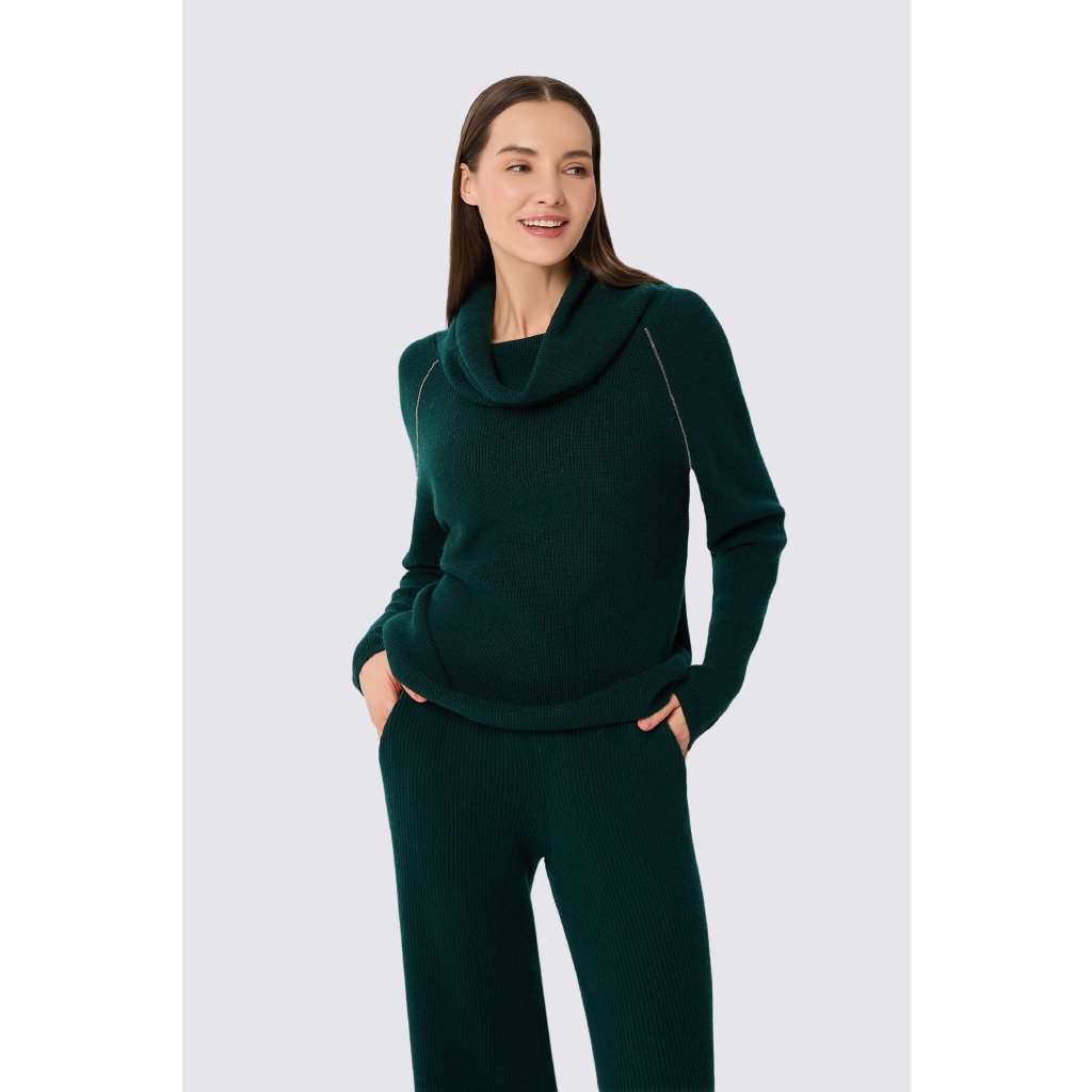 Smaragdový rolák s raglánovými rukávy s 50% kašmíru a 50% merina