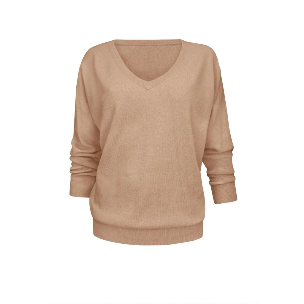 Elegantní dámský svetr s dolmanovým rukávem s výstřihem do V.