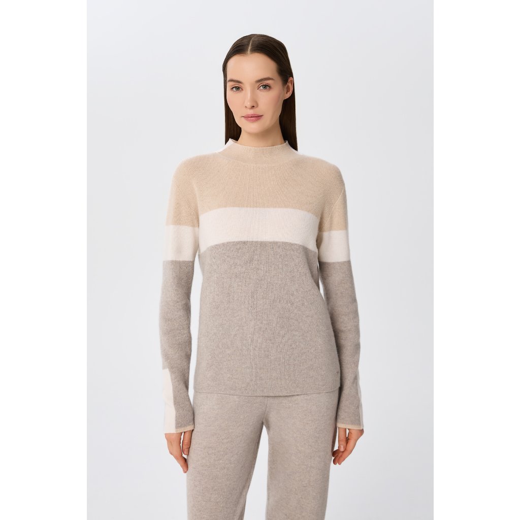 Elegantní svetr se stojáčkem ze směsi kašmír 50% a merino vlna 50%