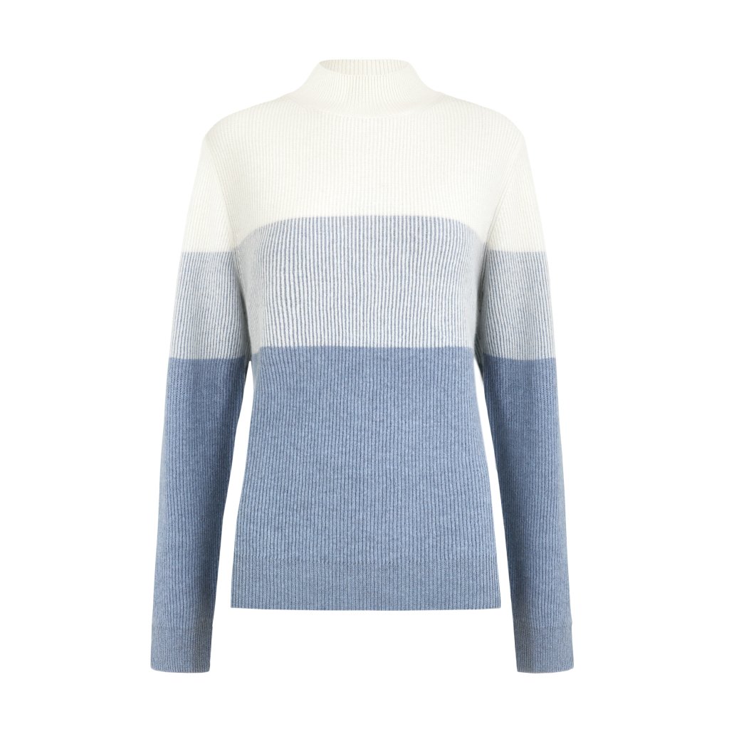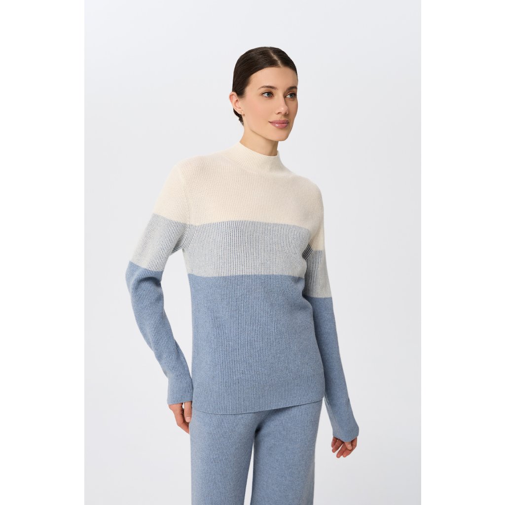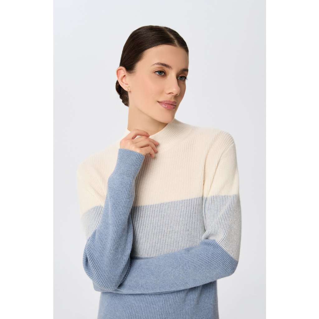 Kašmírový žebrovaný svetr s elegantním stojáčkem s příměsí 50% merino vlny