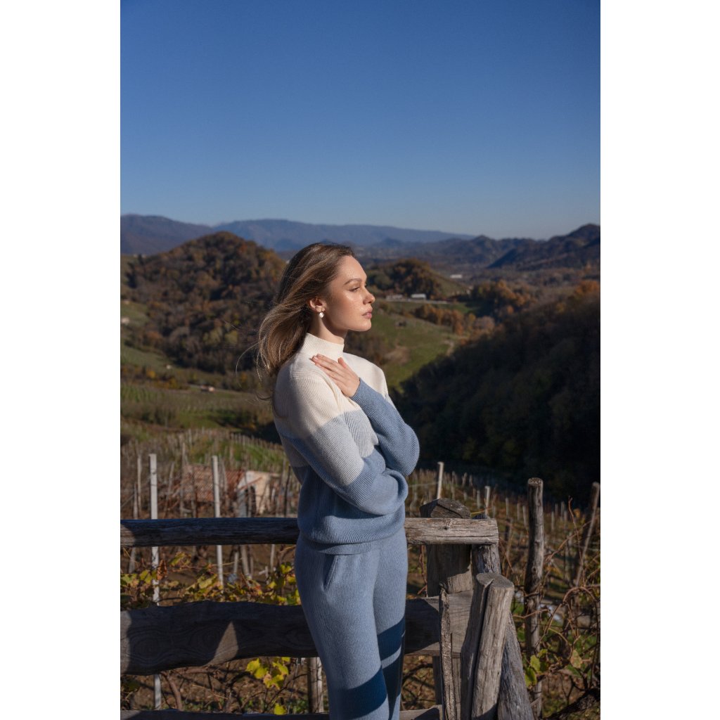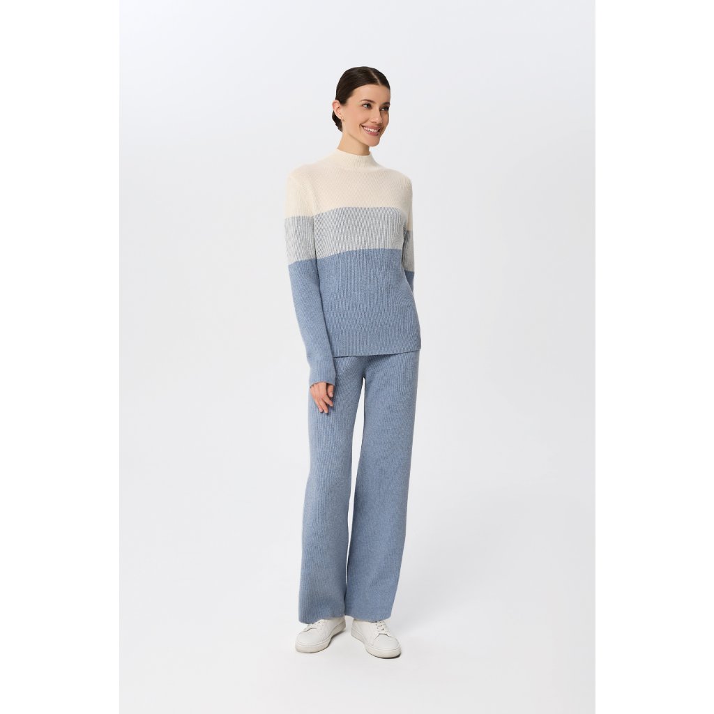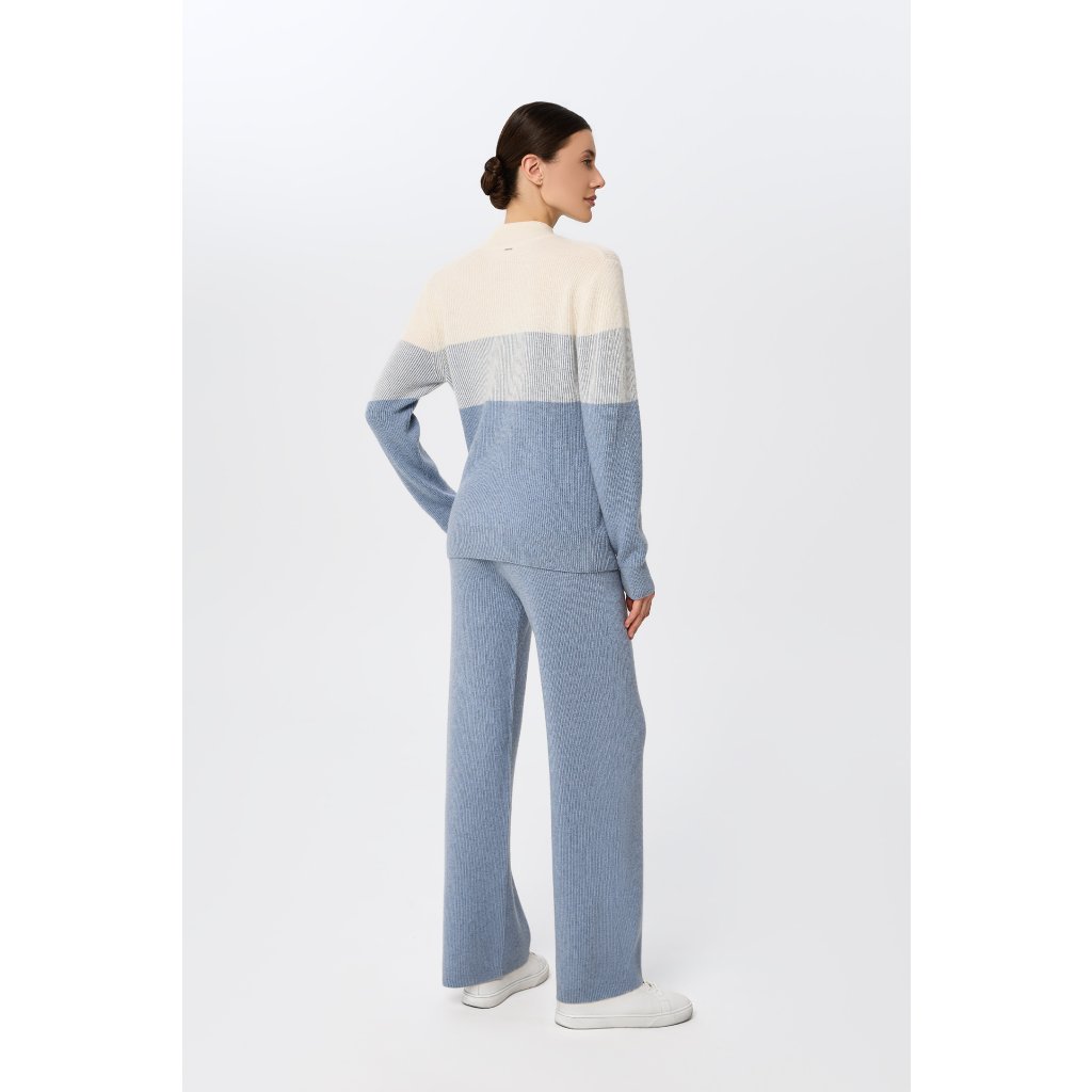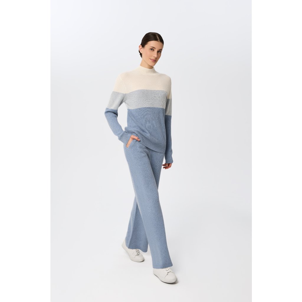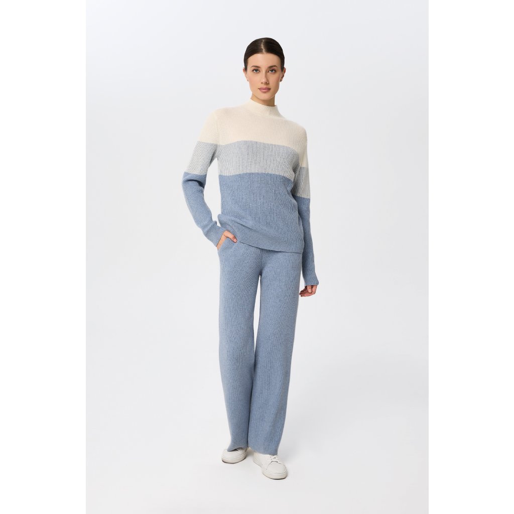 Marc André Paris kašmírový svetr W25-00CH0918 se stojáčkem Ribbed Rhythm v bledě modré